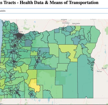 By merging these datasets, the dashboard creates a comprehensive view of how health and transportation intersect across different Oregon communities.